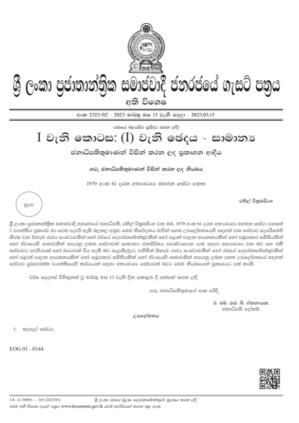 ඒ අතරතුර මෙම ගැසට් නිවේදනය නිකුත් කර ඇත.