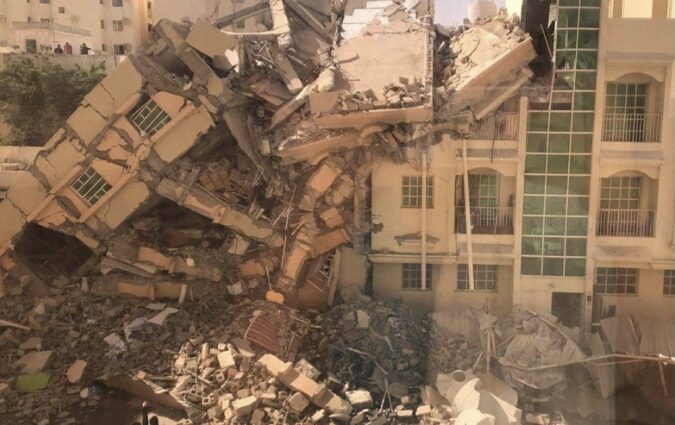 මෙම ගොඩනැඟිල්ල කඩාවැටීම ඉකුත් දා (23) පෙ.ව 8.30ට පමණ සිදුවී තිබෙන අතර එහිදී එක් ශ්‍රී ලාංකිකයකු මිය ගොස් තවත් අයකු අතුරුදන් ව තිබිණි. පසුව (26) දින විදේශ සේවා නියුක්ති කාර්යාංශයේ ප්‍රකාශකයකු කියා සිටියේ අනෙක් අයද මියගොස් ඇති බවය.
