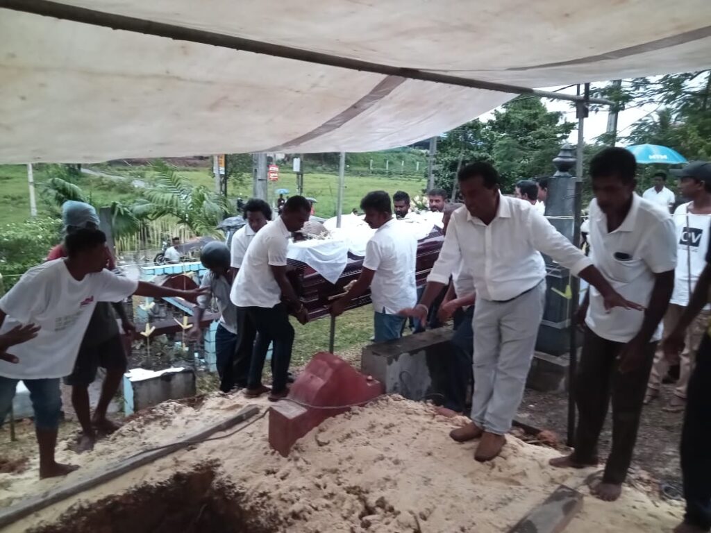 කළුතර නාගොඩ රෝහල ඉදිරිපිට පිහිටි ඇය පදිංචිව සිටී නිවසේ සිදුකල ආගමික වතාවත් වලින් අනතුරුව දේහය අවමංගල්‍ය පෙරහැරින් රැගෙන ගොස් නාගොඩ ඇටවිල පොදු සුසාන භූමියේදී සිදුකරනු ලැබීය.