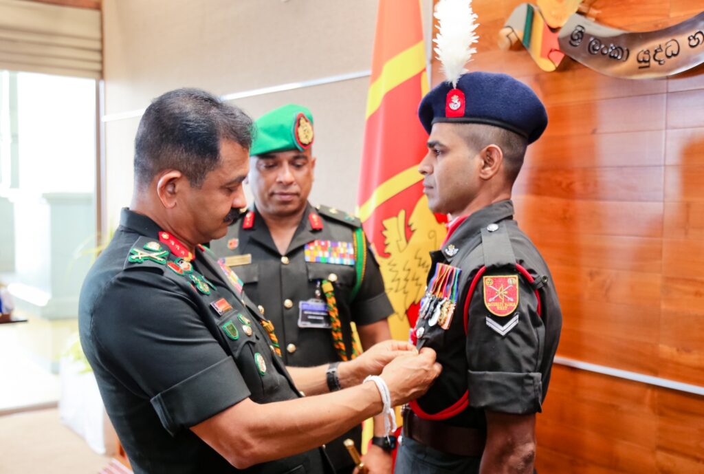 යුද්ධ හමුදාධිපතිතුමන් විසින් කෝප්රල් කේ.එම්.බී.ආර්.කේ.එල් කරුණාරත්න වෙත යුද්ධ හමුදාධිපති ප්රශංසනාත්මක ලාංඡනය පිළිගන්වමින් නිර්භීත සෙබළෙකු ලෙස සිදුකල මෙම ආදර්ශවත් ක්රියාව පිළිබඳව ප්රශංසා කරමින් ඔහුගේ අනාගතය සඳහා සුබ පැතුම් එක් කළේය.