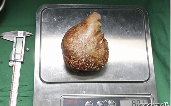 යුද්ධ හමුදා වෛද්යවරුන් විසින් පසුගිය ජුනි 01 දින කොළඹ යුද්ධ හමුදා රෝහලේ දී ඉවත් කරන ලද මෙම වකුගඩු ගල සෙන්ටිමීටර 13.372ක් දිගින් සහ ග්රෑම් 801ක් බරින් යුක්ත වේ.